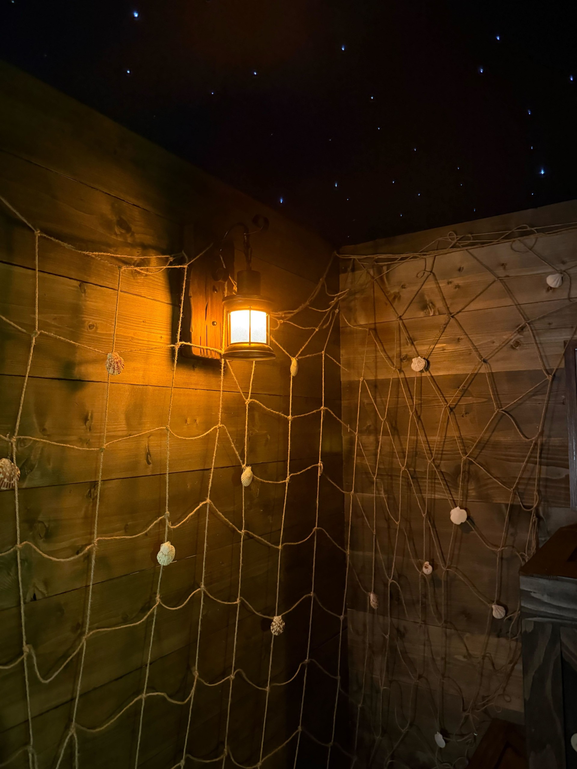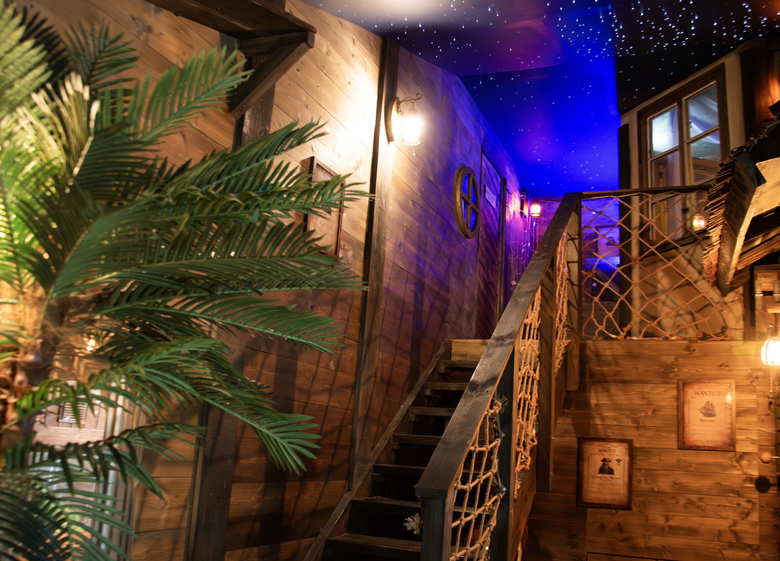 Tout y est pour vous rappeler l'innocence de votre enfance. Des posters de pirates sur les murs, un tapis qui illustre une carte maritime où naviguent de petits bateaux, de faux hublots pour donner l'illusion d'avoir la vue sur l'océan... Un sentiment de joie, de nostalgie et de magie vous envahit soudain.